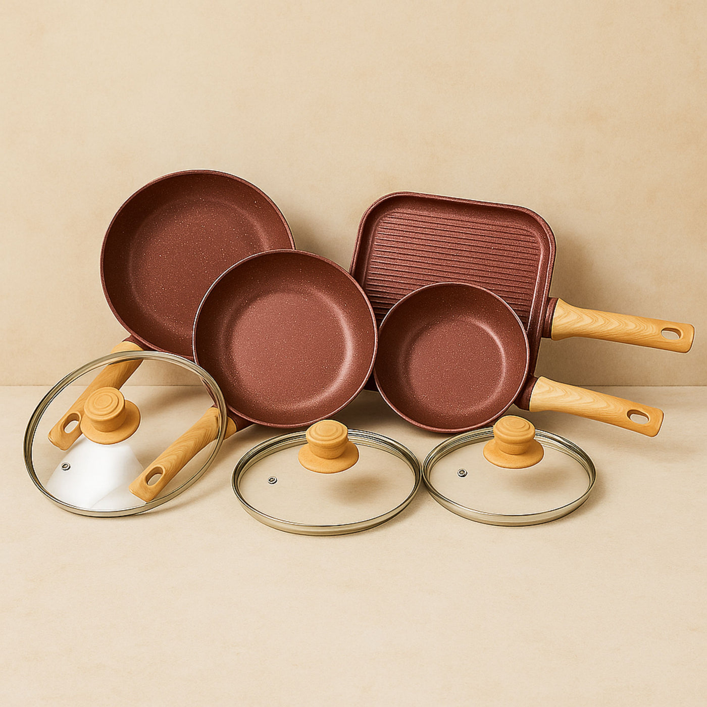 • 4 sartenes de diferentes tamaños: 20, 24, 25 y 26 cm