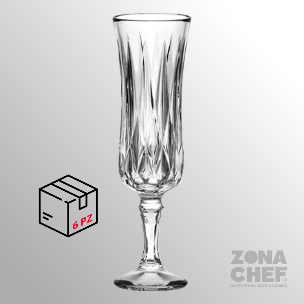 Set 6 Piezas Copa De Vidrio Labrada Flauta Vicenza 155 Ml